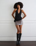 Earline skirt in brown sequin check fabric. Mini style skirt with a-line fit and elasticated waist. Style with our Seren top.