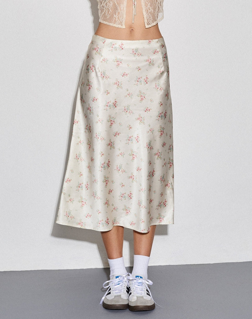 Piya Midi Skirt in Satin Vintage Rose Garland